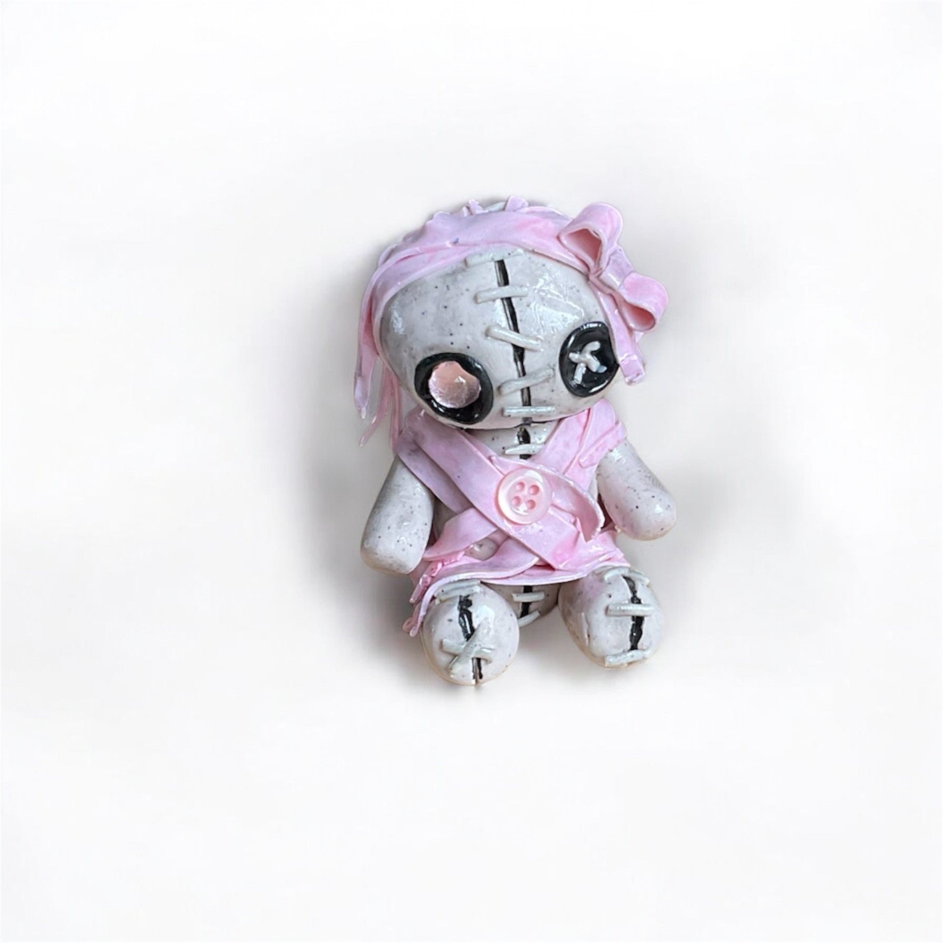 Meet the sweet side of spooky! This handcrafted Creepy Cute Voodoo Figurine perfectly blends gothic edge with soft pastel pink for a unique, must-have collectable.